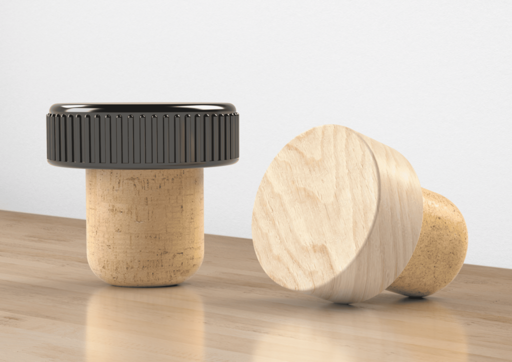 This cork combines the benefits of natural cork and plastic, with one part of each making up this bottle closure. These closures are more common for beverages with high-alcohol percentages, which are not meant to be drunk in one sitting.